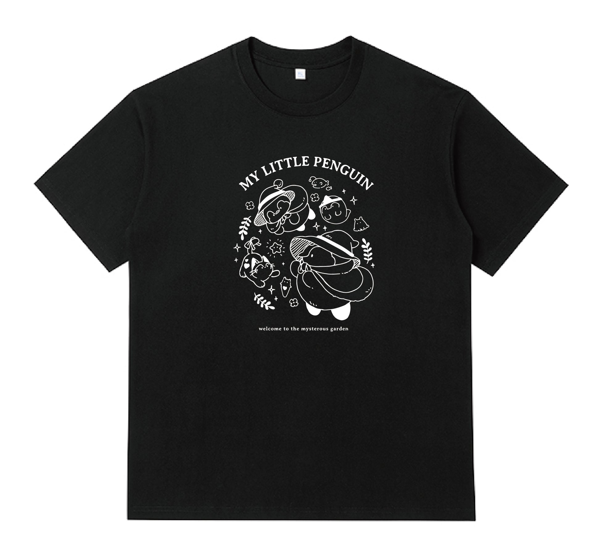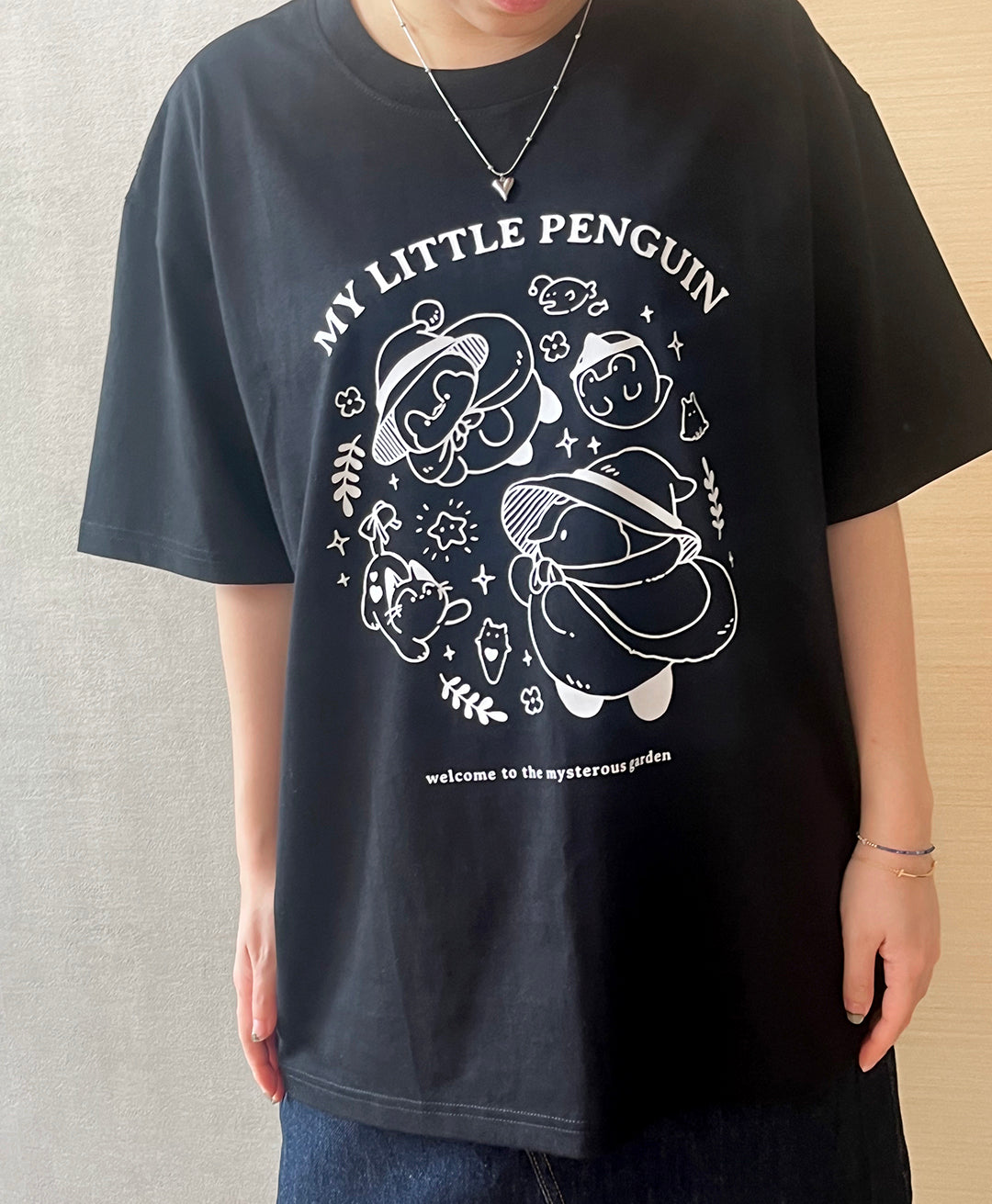 My Little Penguin 繡球花小企鵝系列 | Oversize 男女同款全棉短袖T恤(黑色)